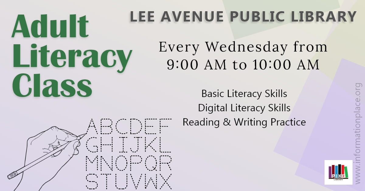 Develop basic literacy skills in this class at the Pike County Public Library (Lee Avenue). Meets every Wednesday at 9:00 AM.