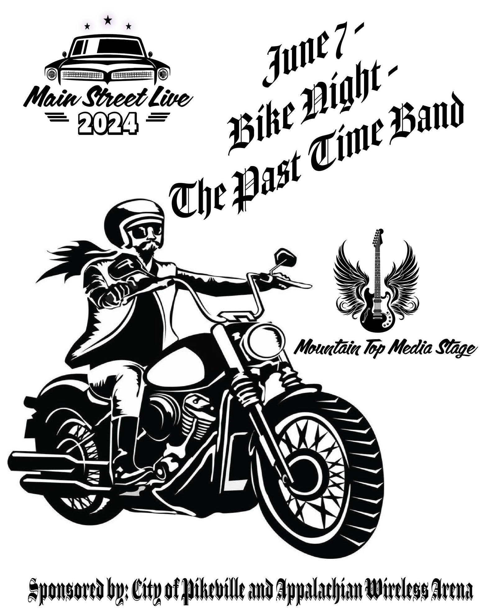 The City of Pikeville and the Appalachian Wireless Arena presents our annual Bike Night. Friday, June 7th from 6PM – 10PM during Main Street Live at the Mountain Top Media Stage featuring live music by The Past Time Band!