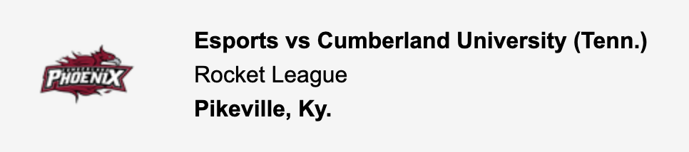 Esports vs Cumberland University (Tenn.)