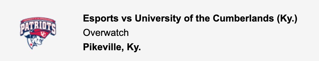 Esports vs University of the Cumberlands (Ky.) Overwatch Pikeville, Ky.