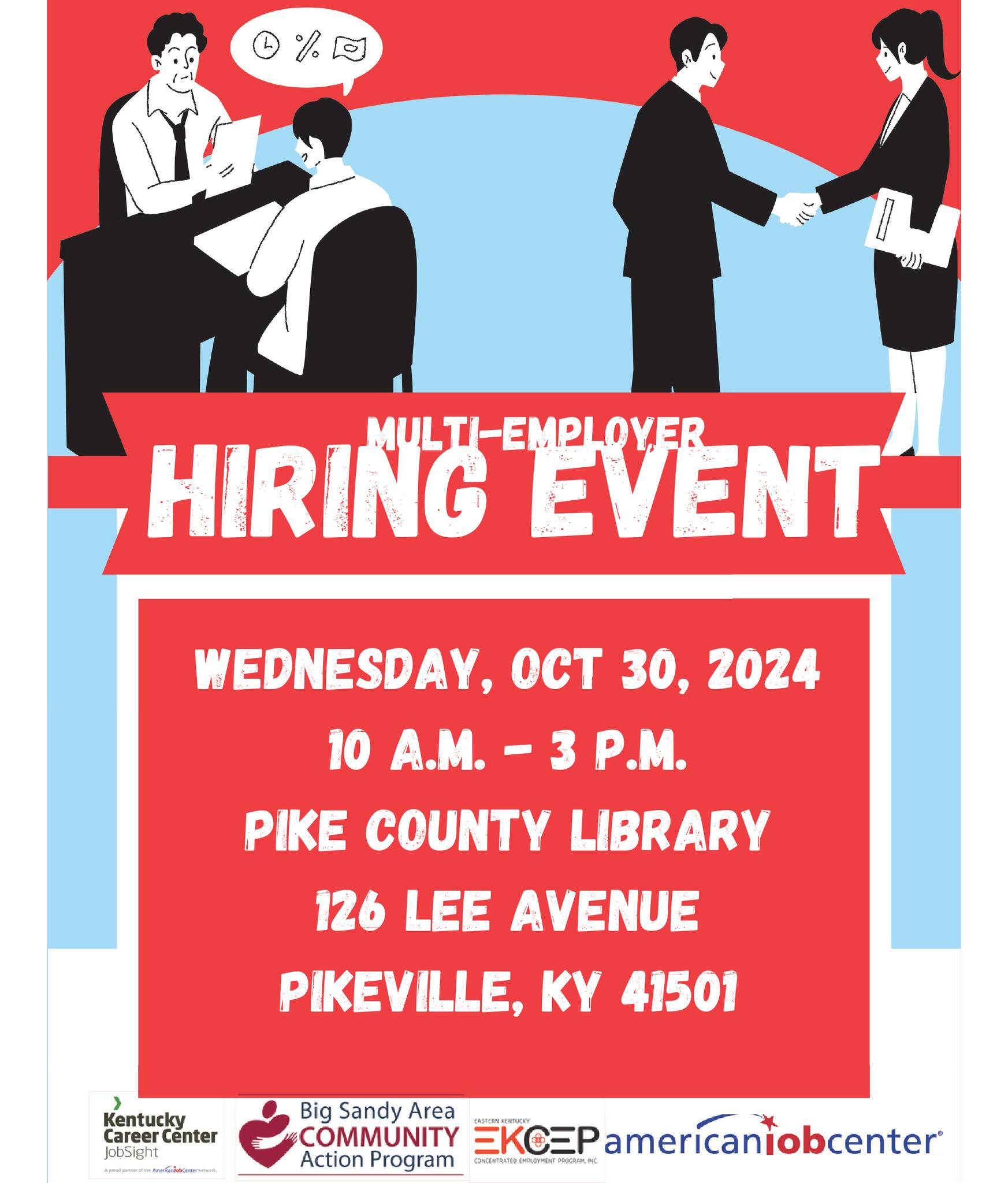 Join us at the Pike County Library on Oct 30 for a multi-employer hiring event to find your next career move!