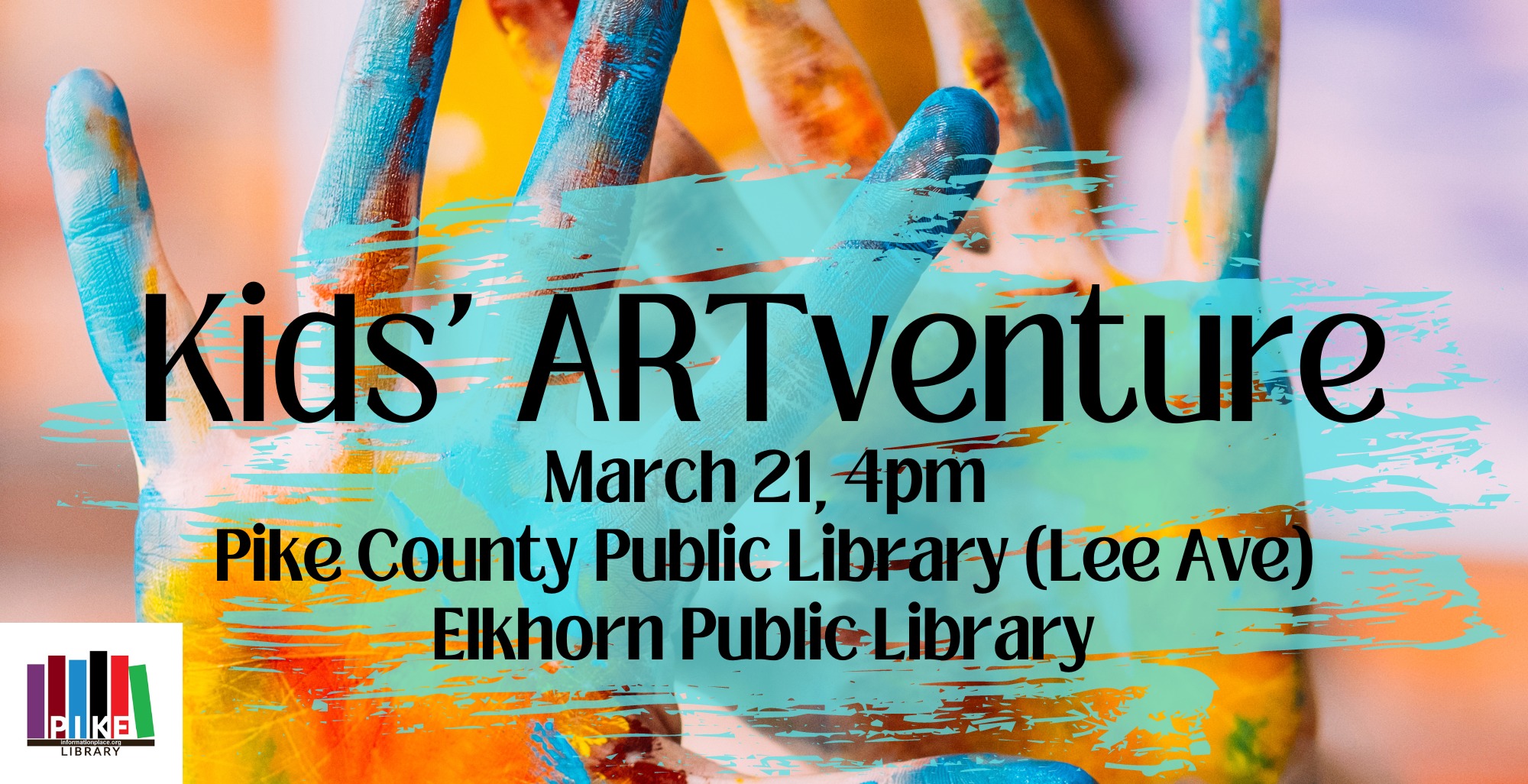 Create a work of art with paint in this free program for children ages 12 and under! Kids’ ARTventure will be held at both the Pike County Public (Lee Ave) and Elkhorn City Public Library on March 21 at 4:00. No registration is required and all materials are provided.