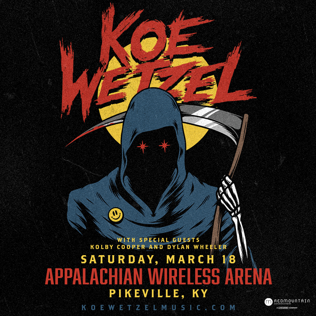 JUST ANNOUNCED💥💥 Koe Wetzel is bringing his 2023 tour to Pikeville! Catch him with special guests Kolby Cooper and Dylan Wheeler on Saturday, March 18 at the Appalachian Wireless Arena. Tickets go on sale this Friday at 10AM! Visit the Community Trust Bank Box Office or Ticketmaster.com