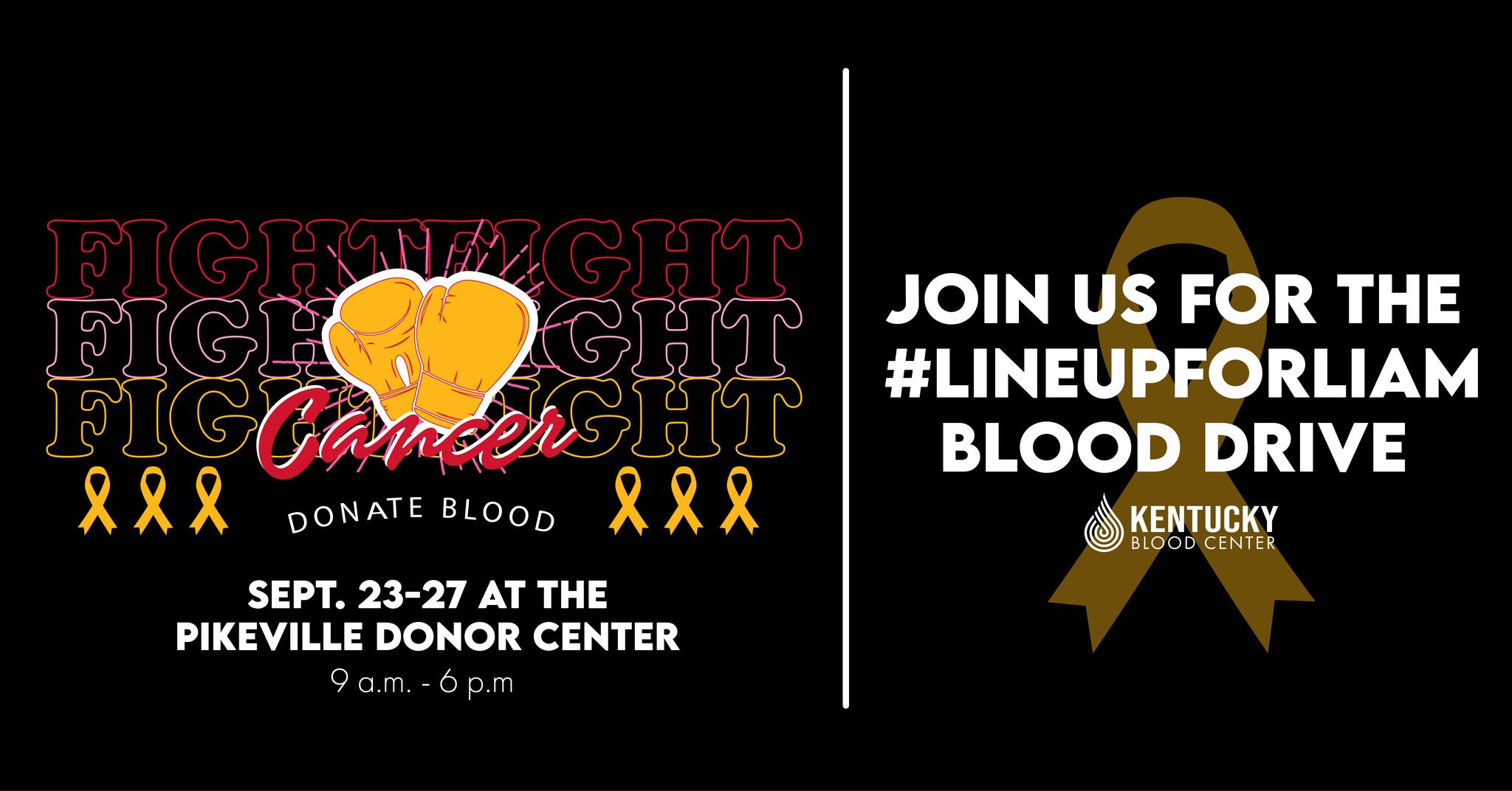 Join Kentucky Blood Center at the Pikeville Donor Center for the Line Up For Liam Blood Drive, Sept. 23-27 from 9 a.m. to 6 p.m.