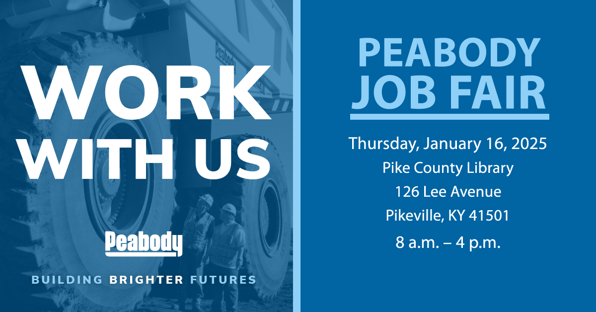 Peabody is looking for experienced coal miners! Come meet Peabody representatives and learn about available positions, benefits and more at our upcoming hiring event in Kentucky.