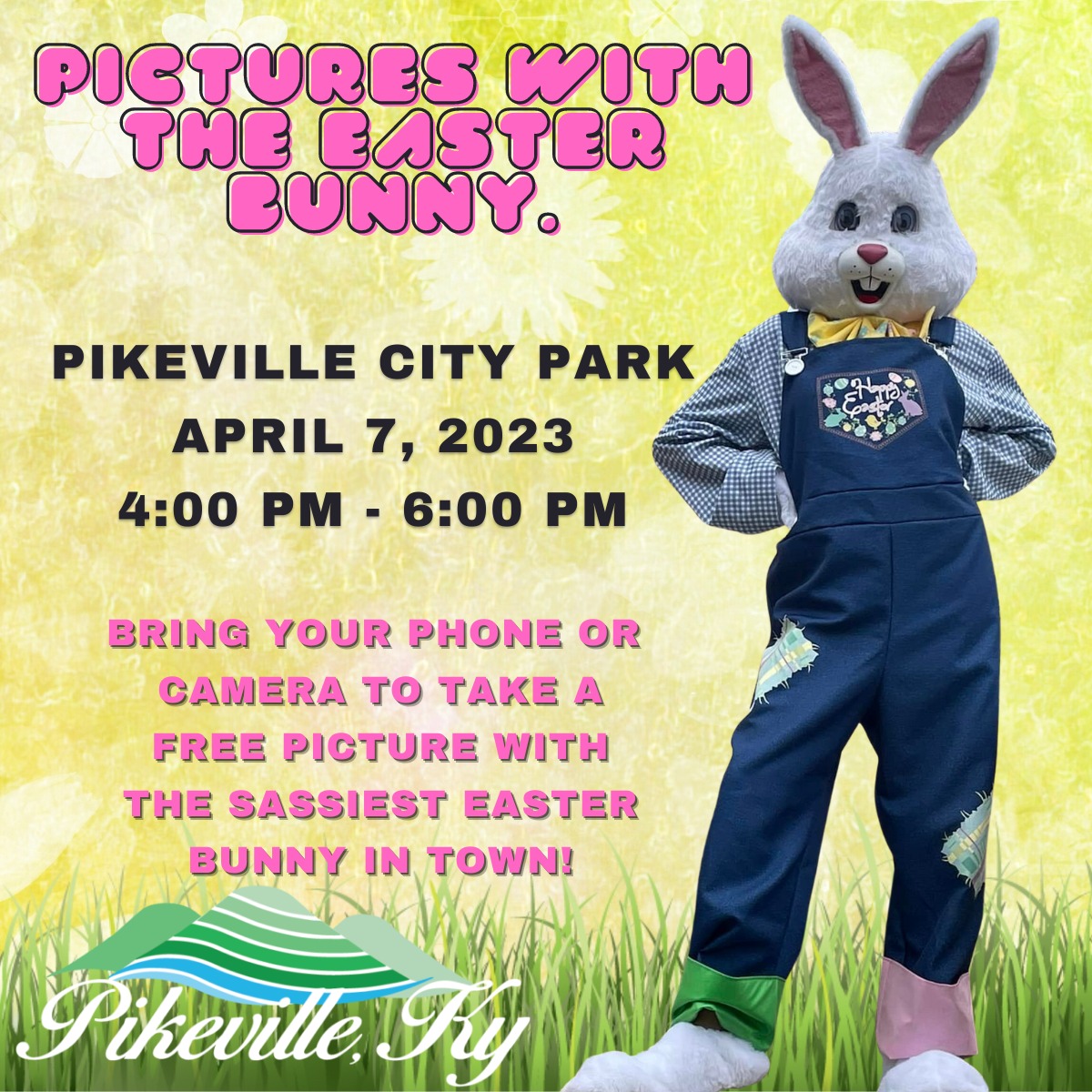 Who’s ready for the Sassiest Easter Bunny in town? Come visit her in the Pikeville City Park on Friday, April 7th from 4:00 PM to 6:00 PM and take a quick pic! We promise you won’t be disappointed.