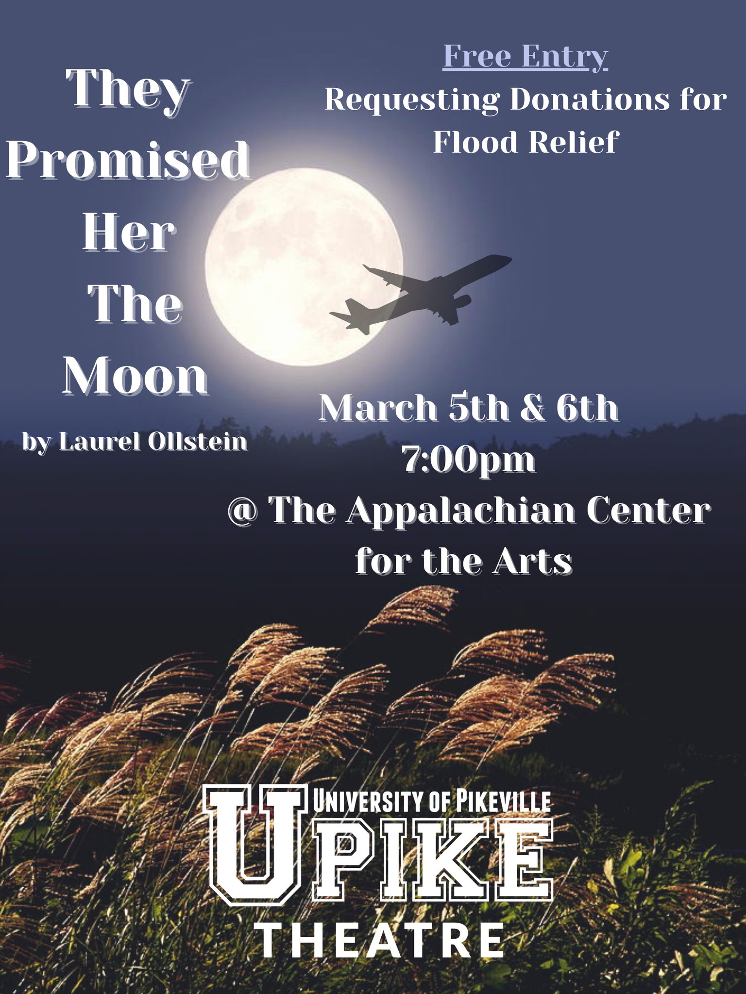 UPIKE Theatre is proud to present our production of “They Promised Her the Moon” by Laurel Ollstein directed by our very own UPIKE Theatre student, Amanda Tharp!