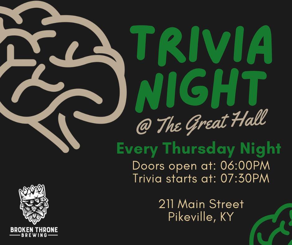 #thegreathall #brokenthronearmy #brokenthronebrewing #trivianight #pikevilleky #brewery #craftbeer