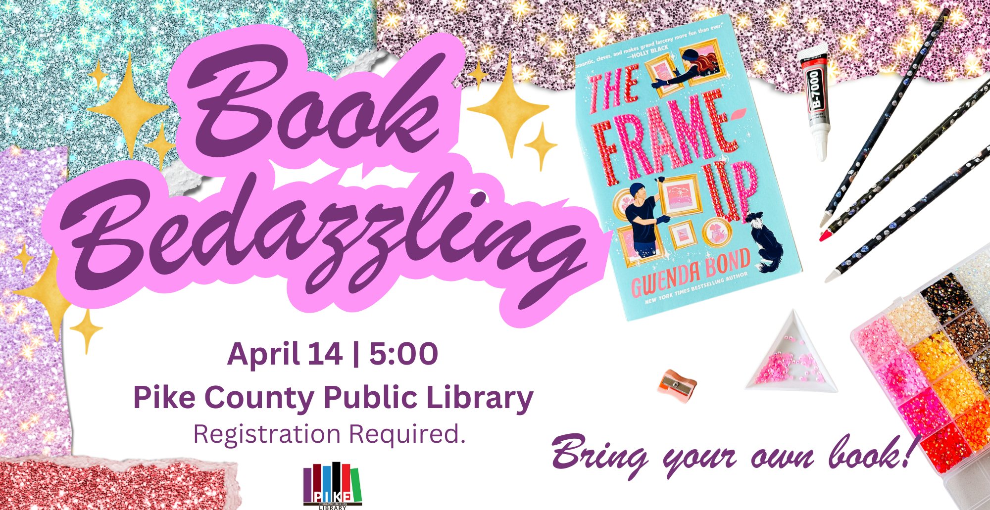Bring your favorite novel and give it a sparkling makeover! Using colorful rhinestones, wax pick-up tools, and craft glue, teens and adults will create their own one-of-a-kind bedazzled covers. This program will be held Tuesday, April 14th at the Pike … Read More