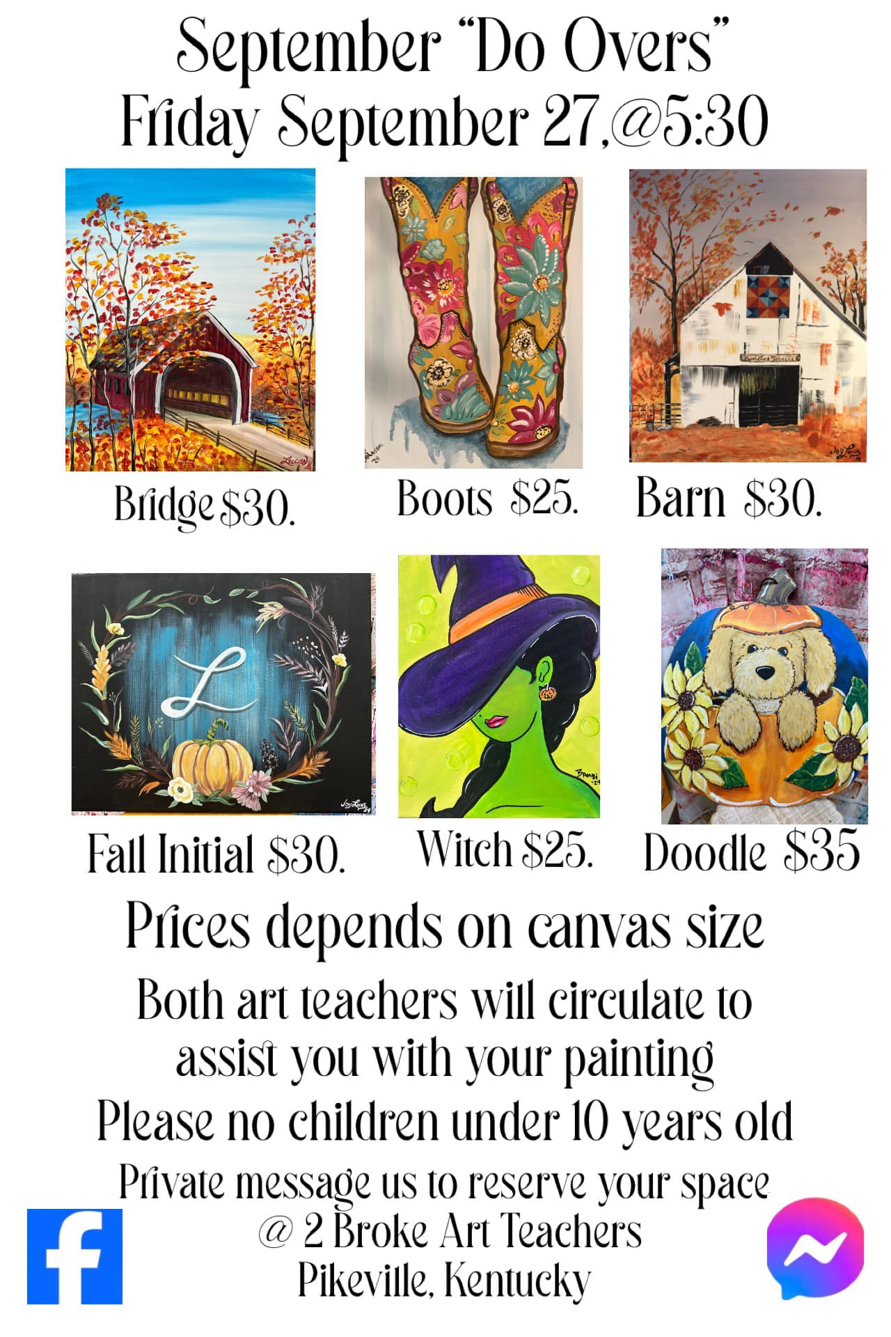 Last month’s “do overs” was a great success. Here’s your chance if you missed a painting that you wanted to paint. Sign up! |