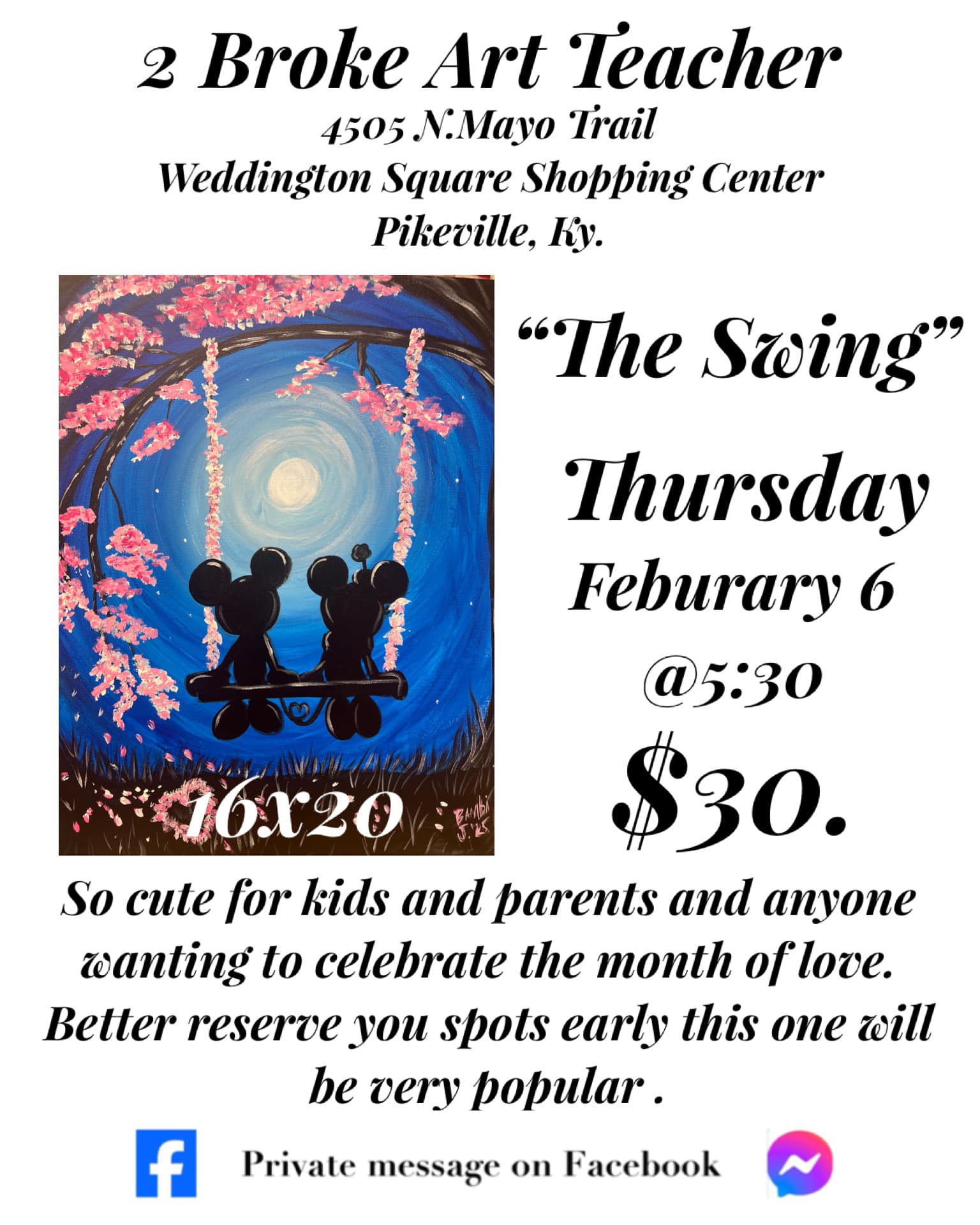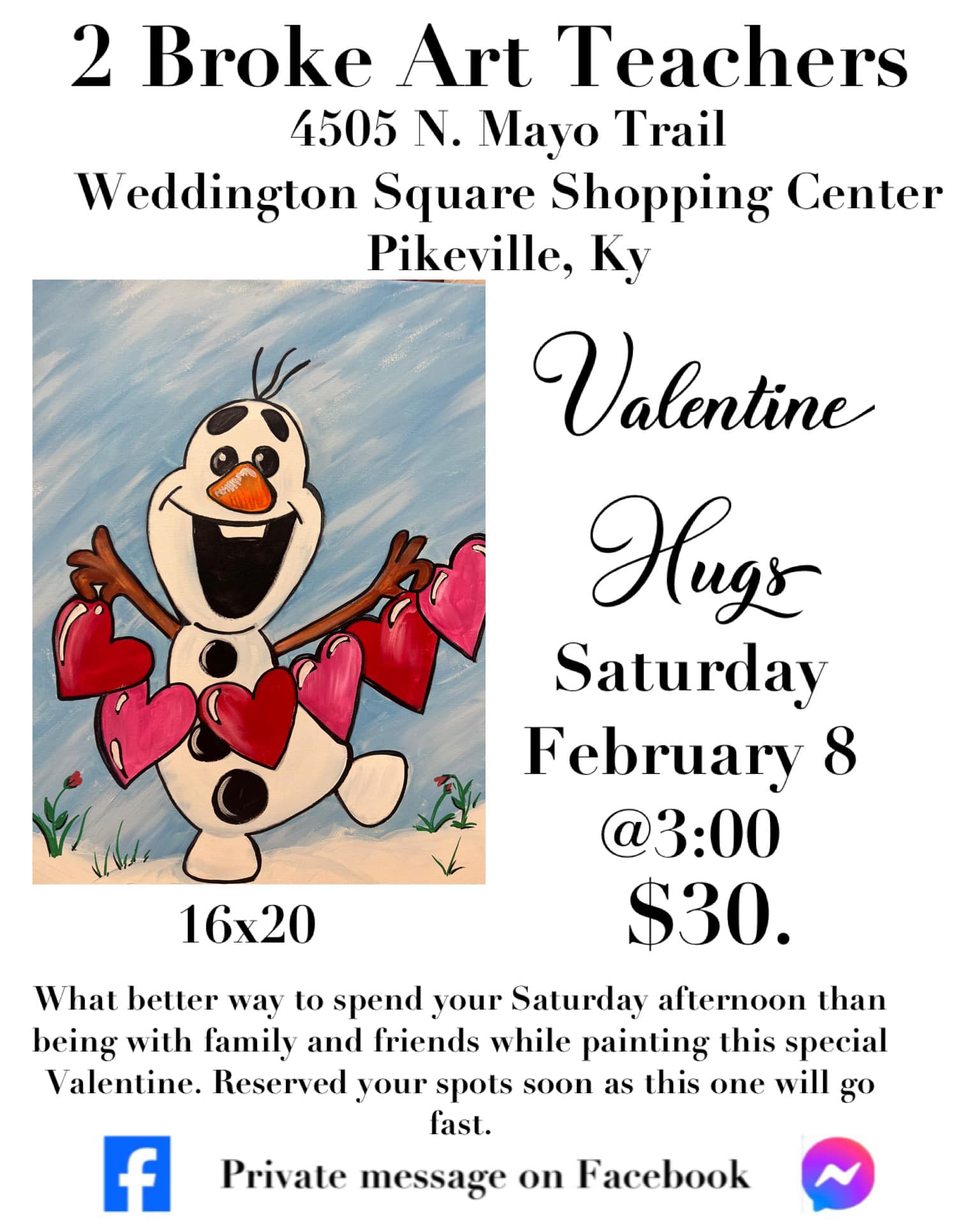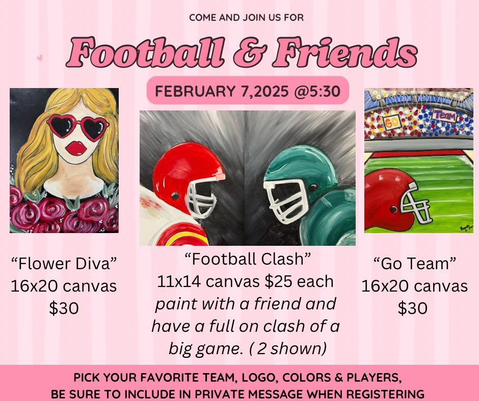 Private message to reserve your spot. Be sure to include how many in your group, which painting/paintings you would like to do and the team logo colors you will want to paint.