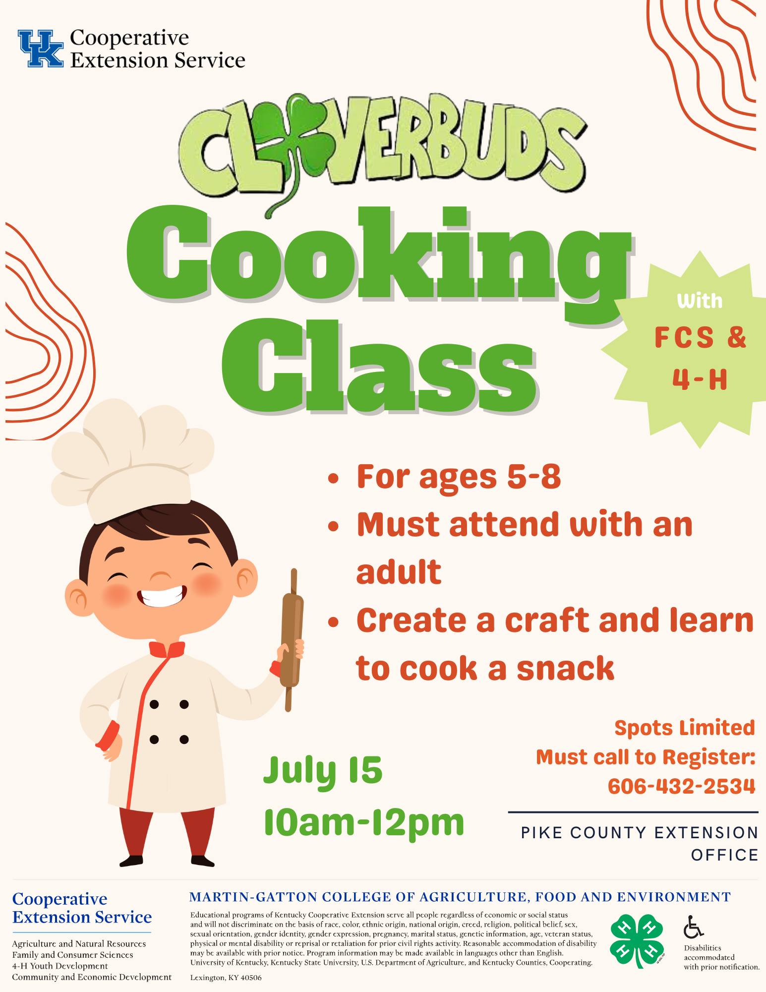 We have another exciting collaboration lined up for July with UK Pike County FCS! All CloverBud aged kiddos (ages 5-8), join us on July 15th for a fun day filled with cooking and crafts. Spots are limited so please call the … Read More