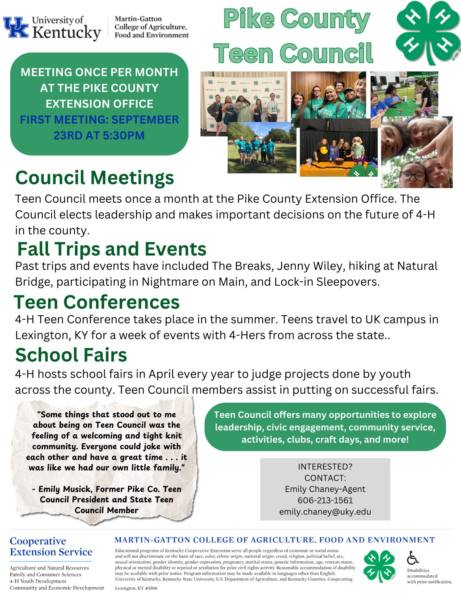 Join us at the Pike County Extension Office this evening for our first Teen Council meeting at 5:30! All 7th-12th graders are welcome. Gain valuable leadership skills, make new friends, and more!