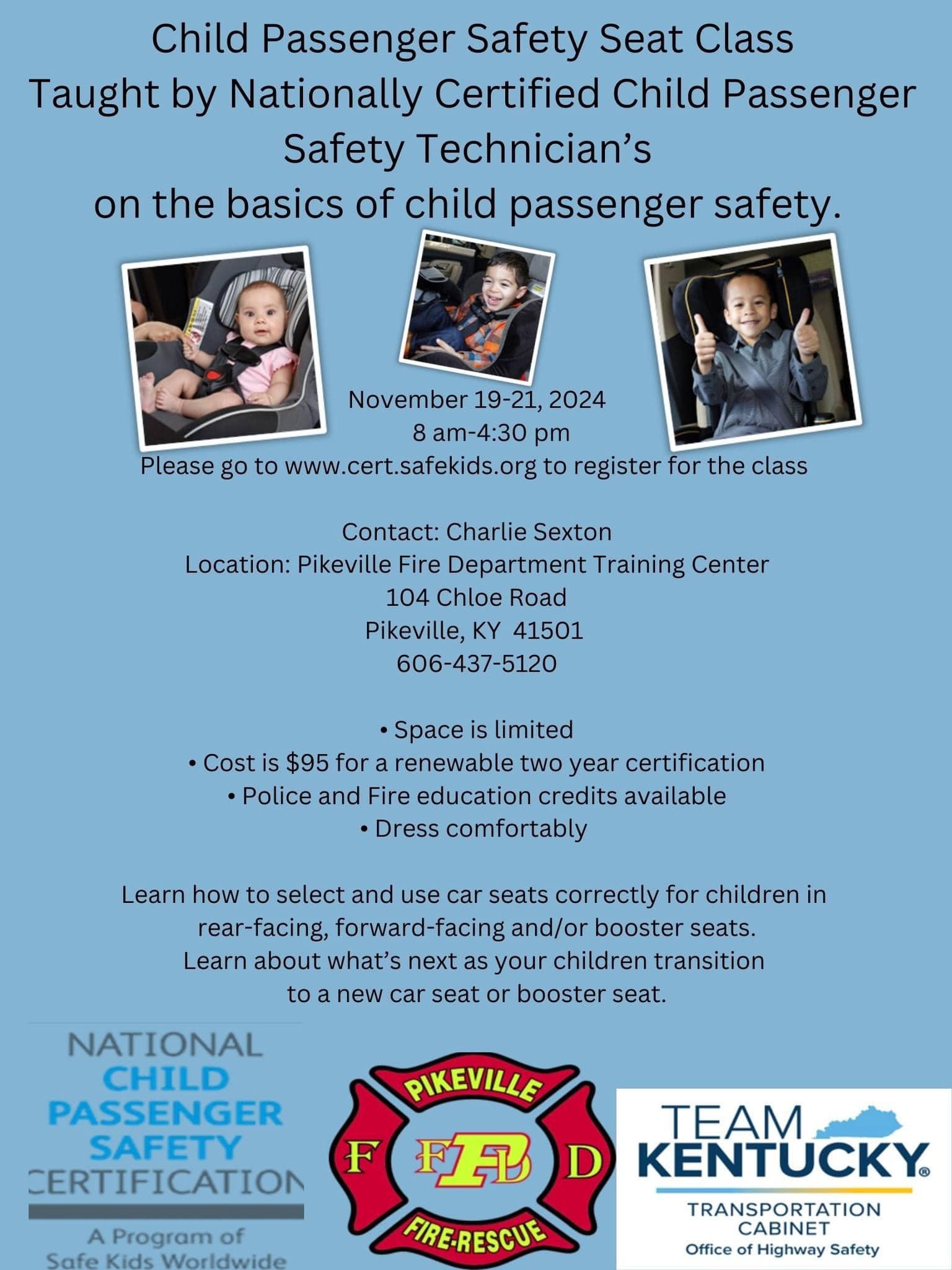 Space is limited Cost is $95 for a renewable 2 year certification Police and Fire Education credits available Dress Comfortably