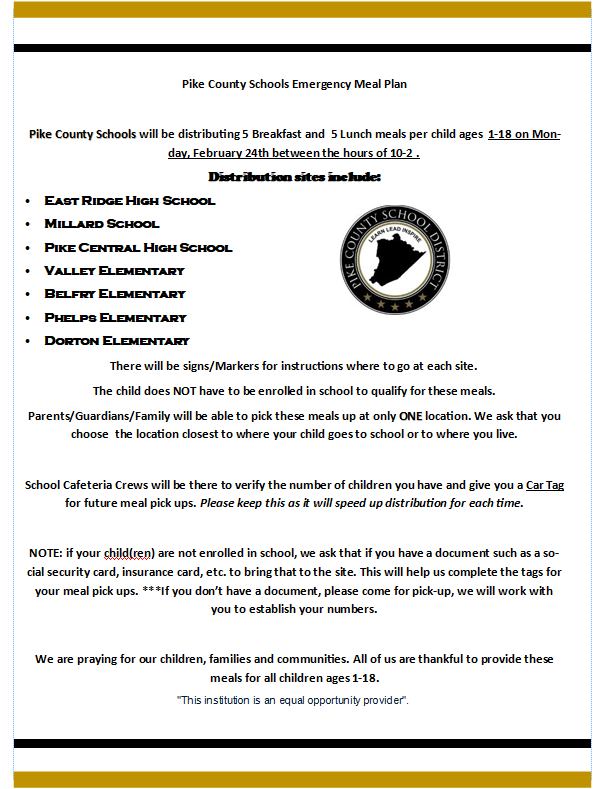 Meal Distribution Information for Children in Pike County