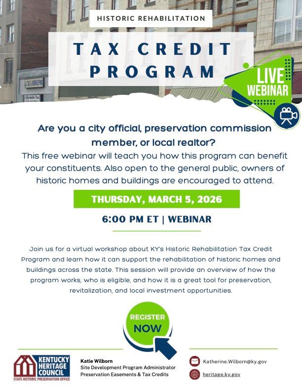 Attention Downtown Property Owners! We wanted to share an important opportunity coming up. The Kentucky Heritage Council (KHC) is hosting a FREE, virtual webinar about Kentucky’s Historic Rehabilitation TAX Credit Program on Thursday, March 5, 2026, from 6:00–7:00 PM ET. … Read More