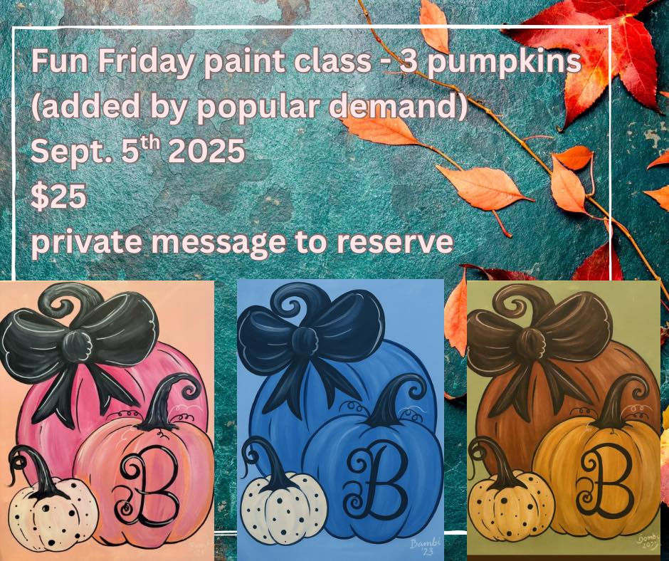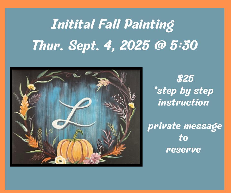 ADDED - Due to popular demand, we’ve added the 3 pumpkin initial painting. Colors can be changed to match your decorations Join us Friday - September 5th at 5:30 PM for a relaxing and creative evening of painting at 2 … Read More