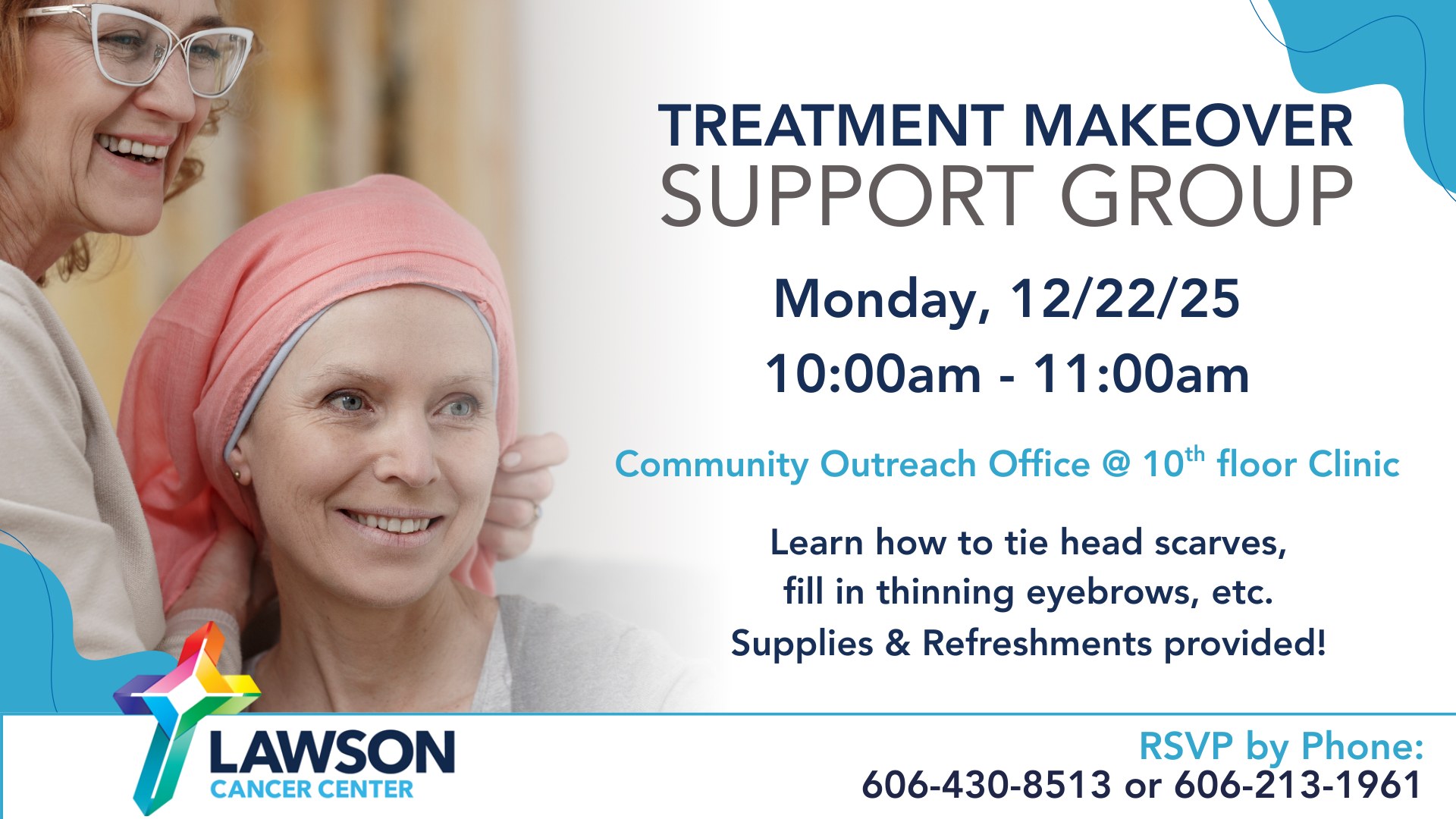 New Support Group at Lawson Cancer Center. Are you currently undergoing chemotherapy or radiation treatment and looking for ways to feel more confident and comfortable during your journey? Treatment Makeover Support Group is a monthly gathering designed to help patients … Read More