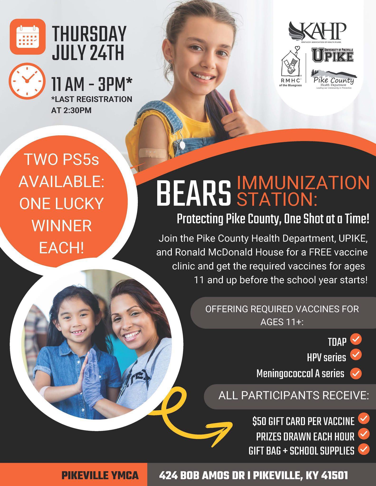 Want to get $50 gift cards AND get your child’s vaccines up to date? Want a chance to win a PS5 or need some school supplies? Come to the BEARS Immunization Station at the YMCA on Thursday, July 24th from … Read More