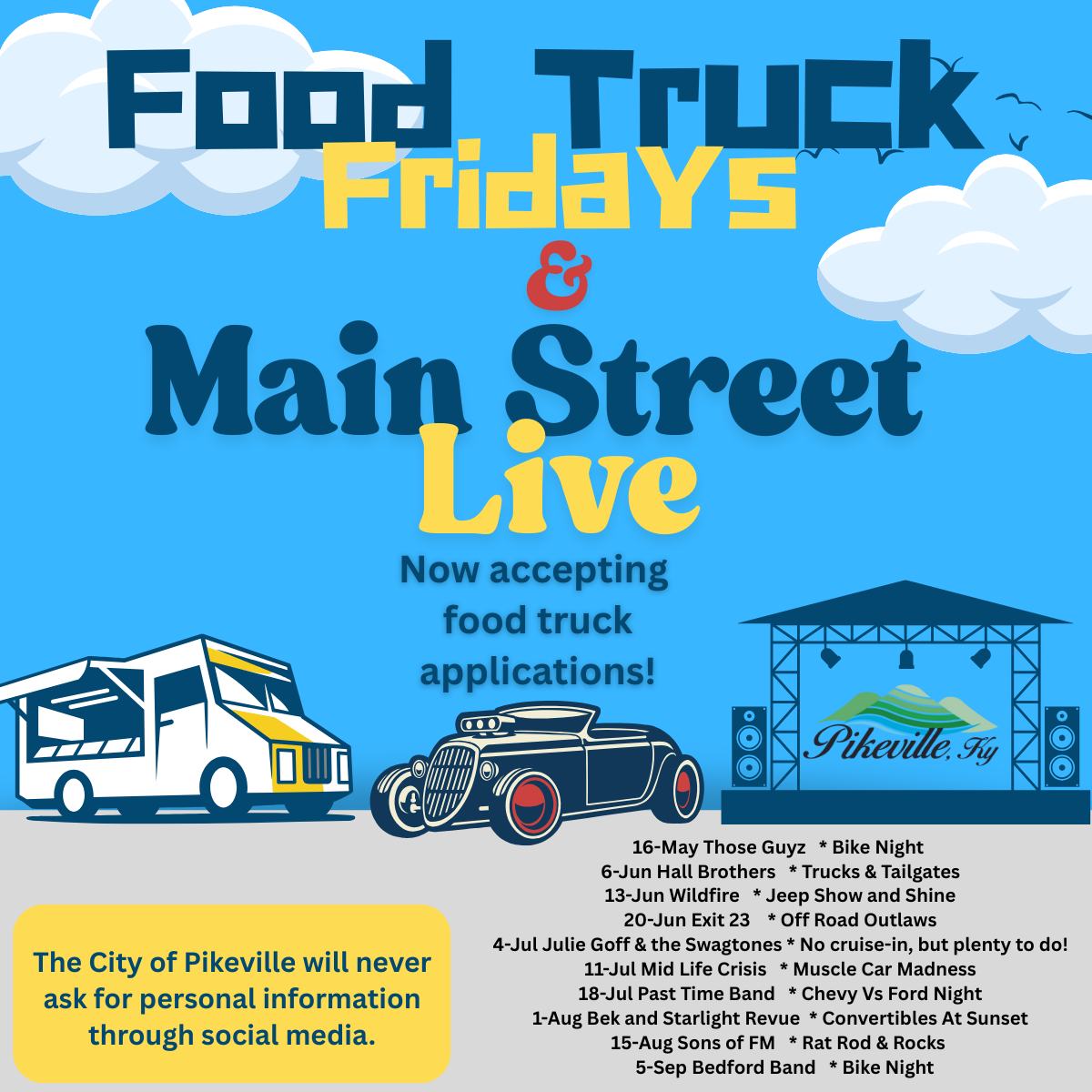 Calling All Food Trucks! Join Food Truck Fridays in collaboration with Main Street Live for an incredible season of food, live music, and themed cruise-ins in downtown Pikeville! With exciting themes and top-notch bands each night, this is your chance to … Read More
