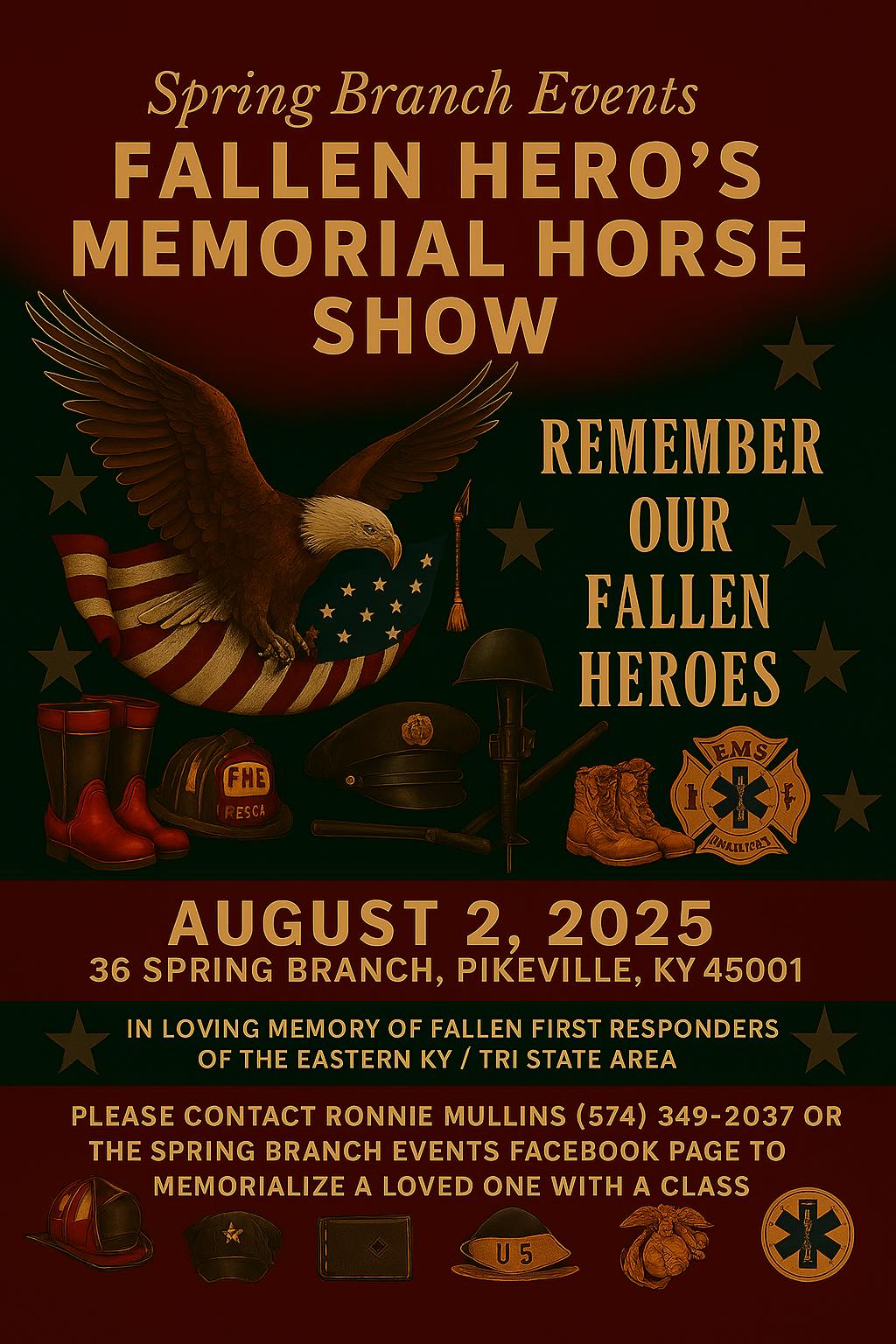 The Spring Branch Events organization invites the community to a heartfelt day of remembrance and tribute at the Fallen Hero’s Memorial Horse Show, happening August 2, 2025, at 36 Spring Branch, Pikeville, KY 45001. This powerful event honors the brave men and women … Read More