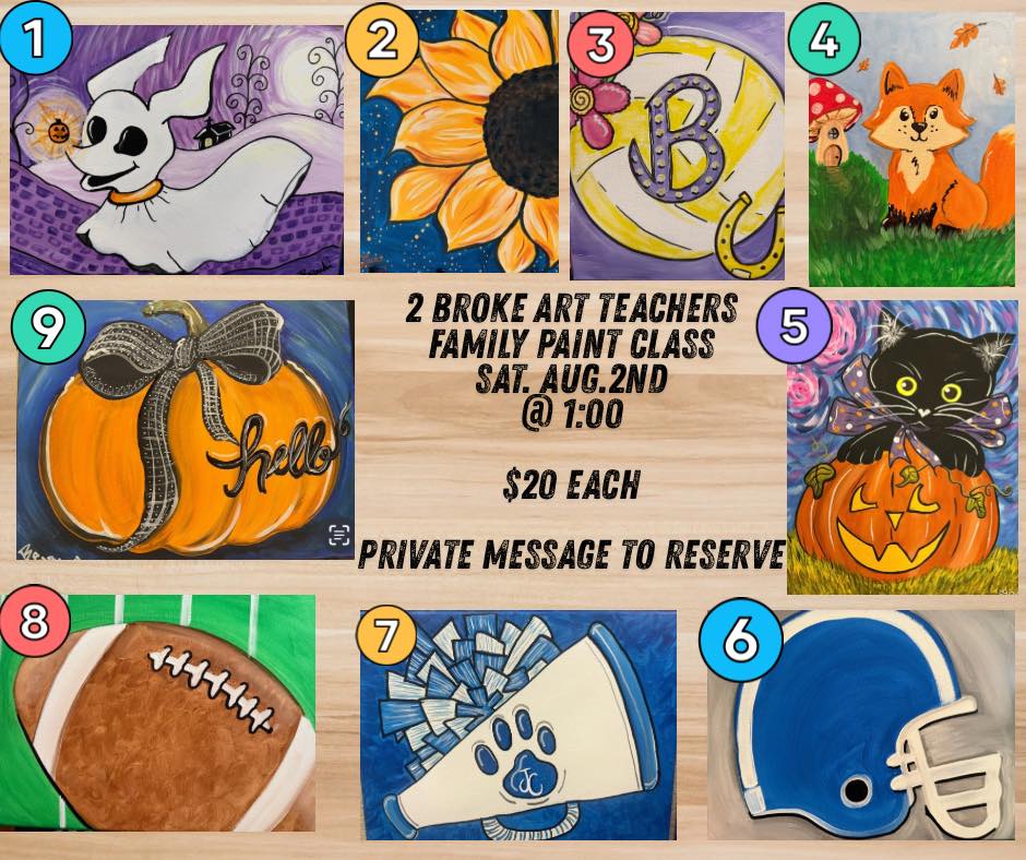 Family paint class… Saturday Aug. 2nd 2025 @ 1:00 the coloring and the lettering can be changed to create a 1 of a kind masterpiece .
