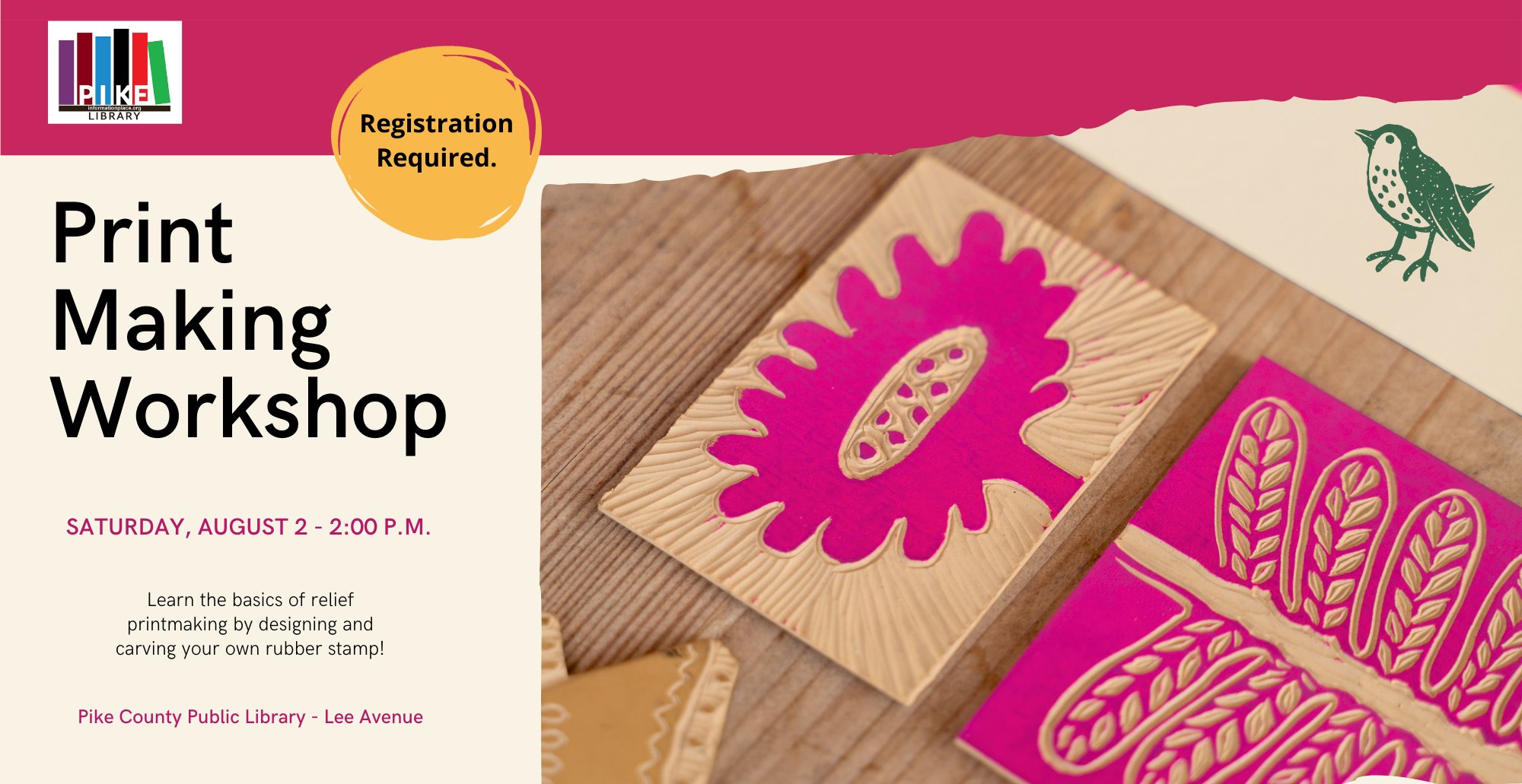 Join us for a hands-on printmaking workshop led by a talented art student from Berea College! Participants will learn the basics of relief printmaking by designing and carving their own rubber stamps, then using them to create unique prints. All … Read More