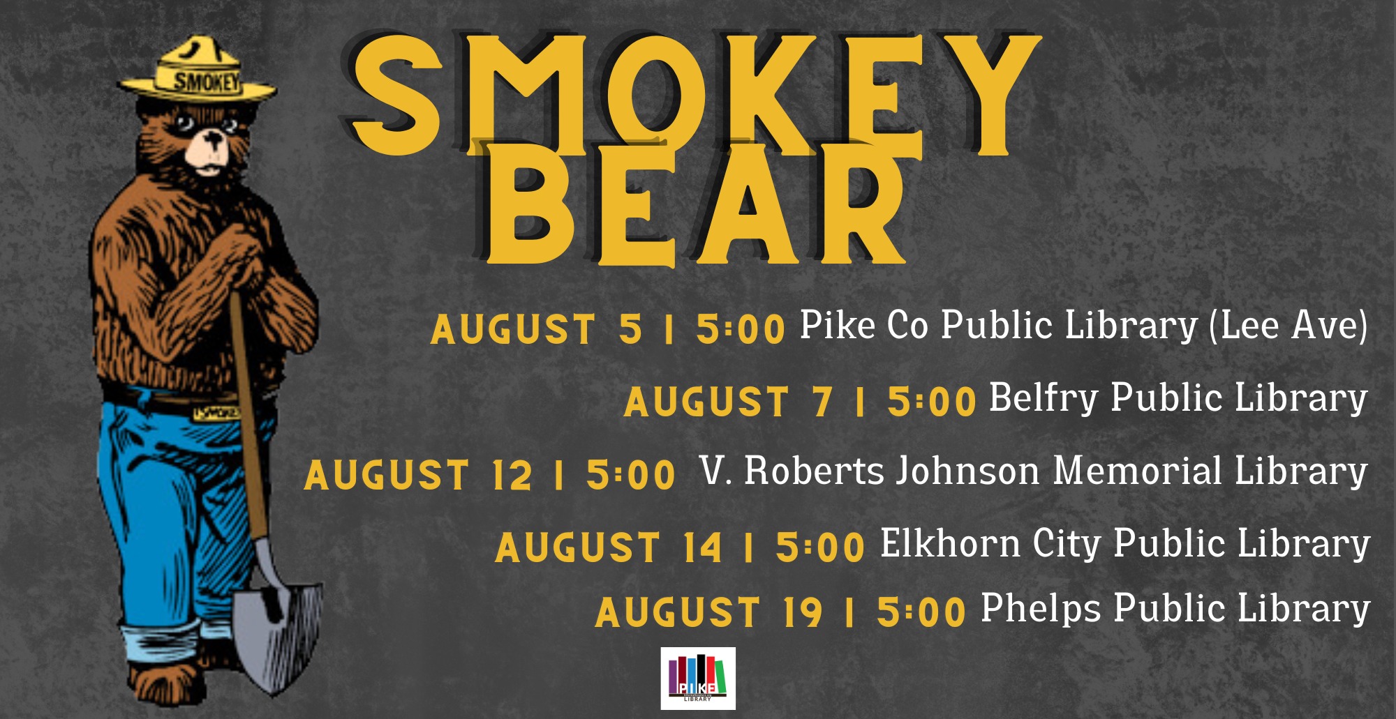 Join us for a special story time featuring a visit from Smokey Bear! We'll hear Smokey's story and learn how we can help protect our forests and stay safe around fire. Kids will then have a chance to meet Smokey … Read More