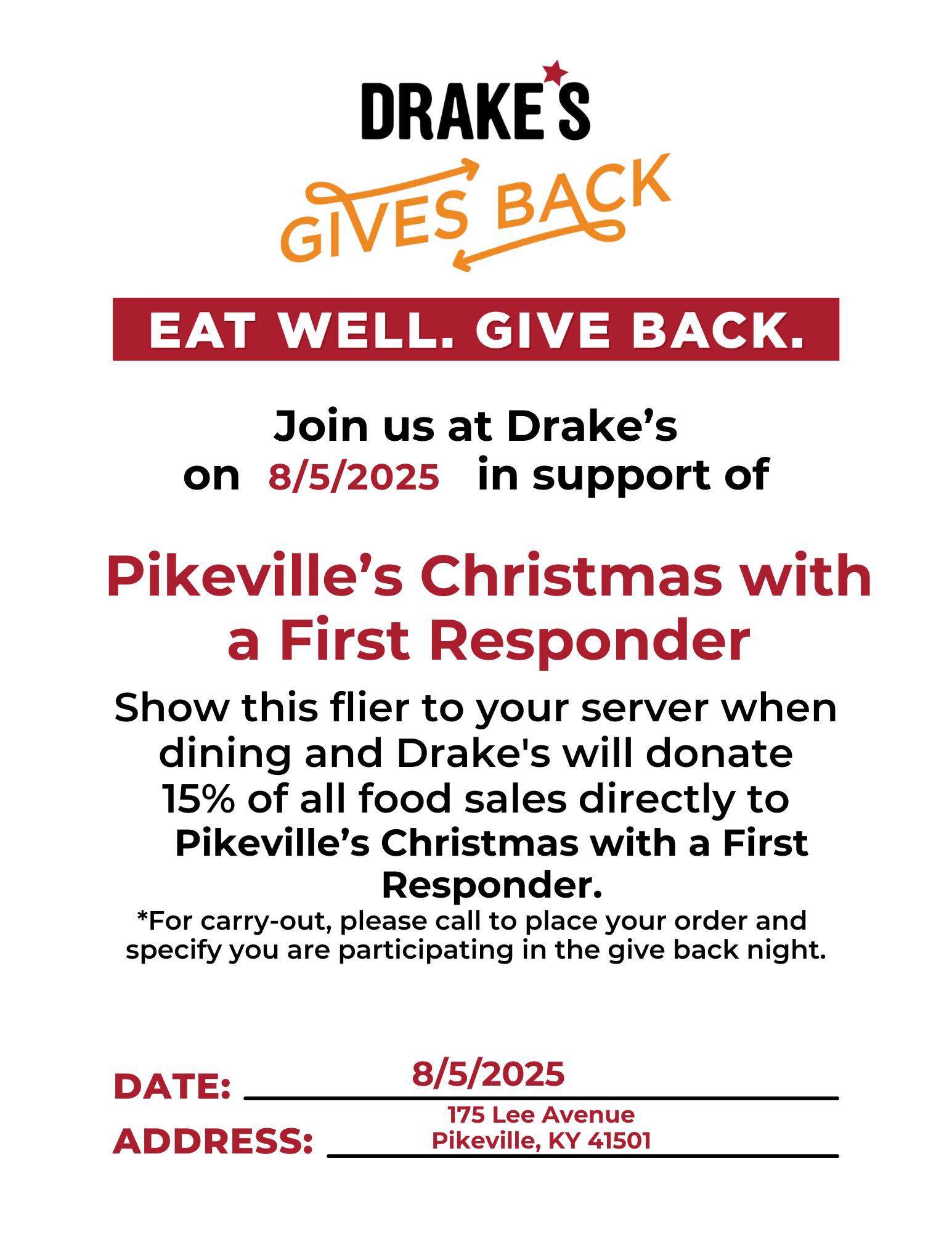 • Give Back Night with Drake’s Pikeville, KY