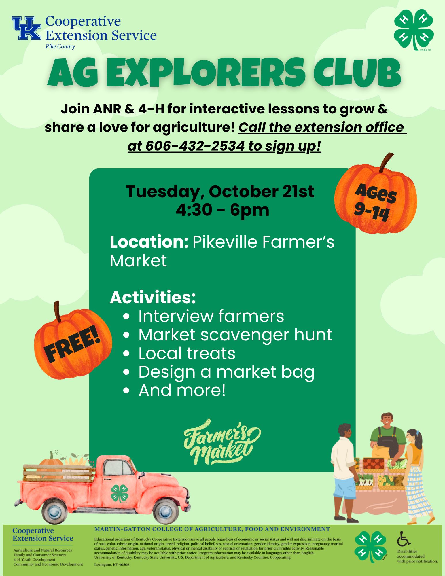 Our Ag Explorers Club meeting for October has been RESCHEDULED for Tuesday, October 21st at the Pikeville Farmers Market. If you are interested in learning more about our local farmers, give us a call at the Pike County Extension Office … Read More