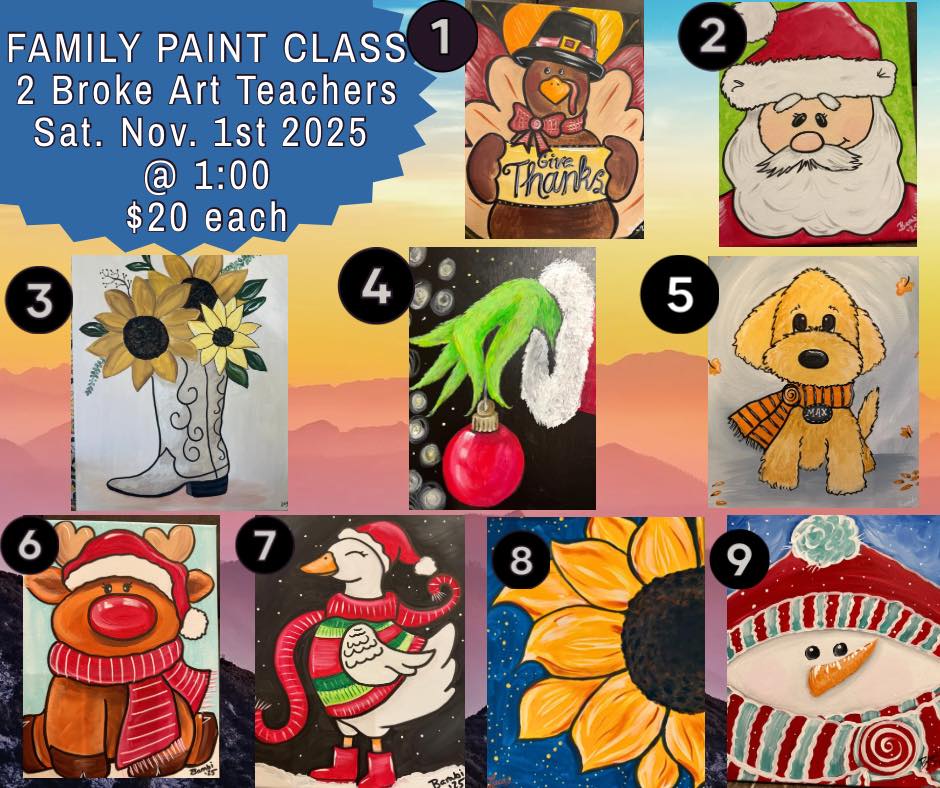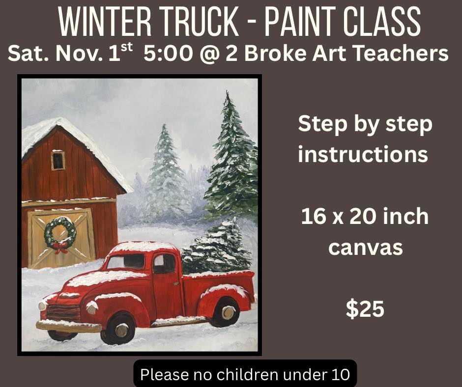 Attention Pikeville & surrounding areas! Hop in for our Winter Truck Painting class—perfect for kicking off cozy season! We’ll provide step-by-step instruction and guide you through every brushstroke. Saturday, Nov. 1 @ 5:00 PM 16x20 canvas — $25 Please, no … Read More
