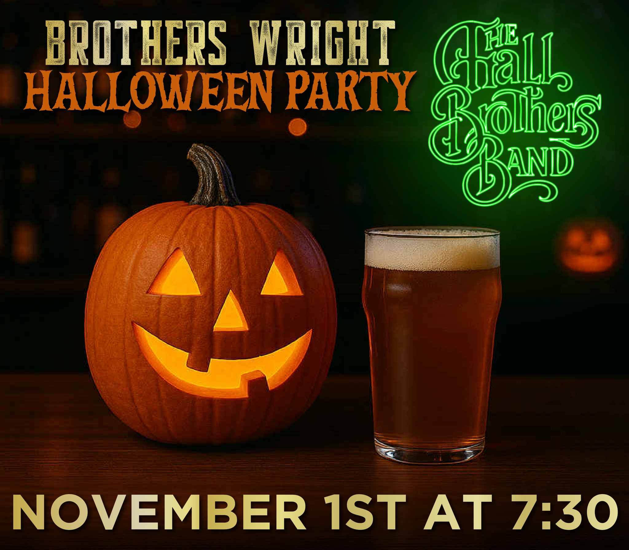 Keep the Halloween spirit going at Brothers Wright Distilling Co. Join us on Saturday, November 1st at 7:30 PM for a Halloween celebration with live music from The Hall Brothers Band. Costumes are welcome Live music • Drinks • Good … Read More