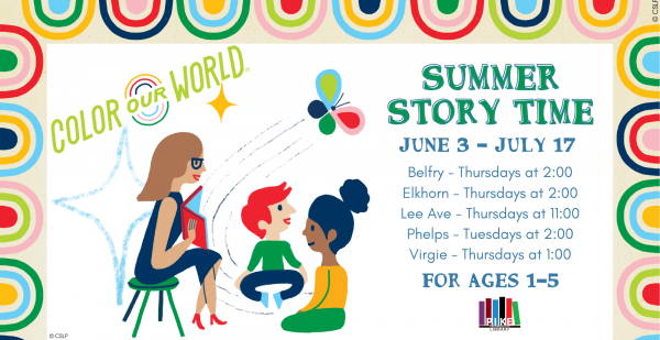 Summer Story Time is for children ages 1-5 and features books, action/movement, songs, and a craft. Summer Story Time is held at the Pike County Public Library (Lee Ave) every Thursday at 11:00 from June 5th-July 17th.