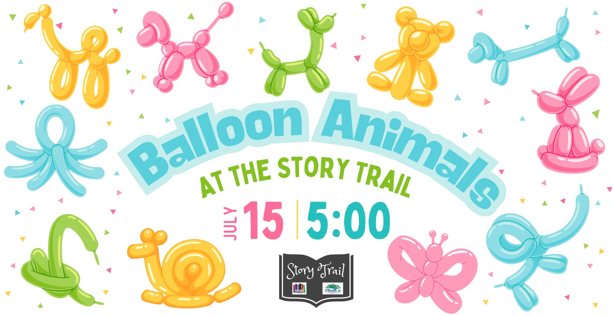 Take a walk down the Story Trail to read “The Hard Knock Life of Balloon Animals” by Adam Brown. Along the trail, children will find balloon artists ready to twist a balloon animal for them. Continue through a simple obstacle … Read More