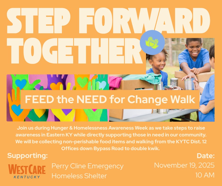 KY Transportation Cabinet District 12 109 Loraine St,, Pikeville, KY, United StatesThis walk is intended to raise awareness for hunger and homelessness in Eastern Kentucky while supporting critical services in our community. Tuesday, November 19th at 10 AM Donations of non-perishable food items will be accepted directly at the shelter, 173 … Read More