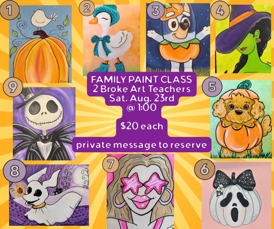 Bring the crew and get creative at 2 Broke Art Teachers in Pikeville, KY on Saturday, August 23, 2025!Choose from 9 adorable paintings—perfect for all ages and skill levels. $20 per canvas 2 Broke Art Teachers, Pikeville, KYSeats fill fast—private message us … Read More