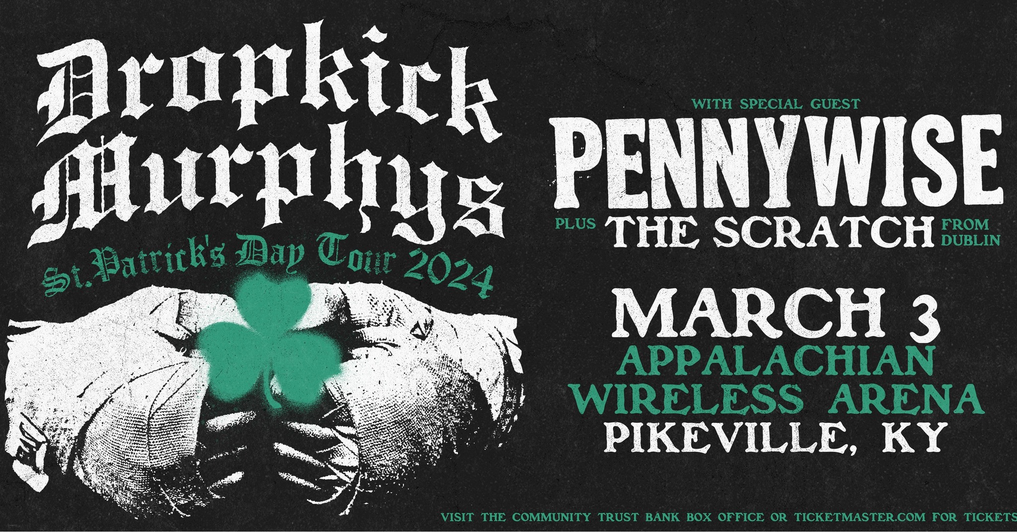 St. Patrick’s Day Tour 2024 With special guest Pennywise Plus, The Scratch from Dublin Sunday, March 3 Appalachian Wireless Arena Pikeville, Ky Tickets are $29.50, $39.50, $49.50, and $69.50. Tickets ON SALE NOW! Visit the Community trust Bank Box Office … Read More |