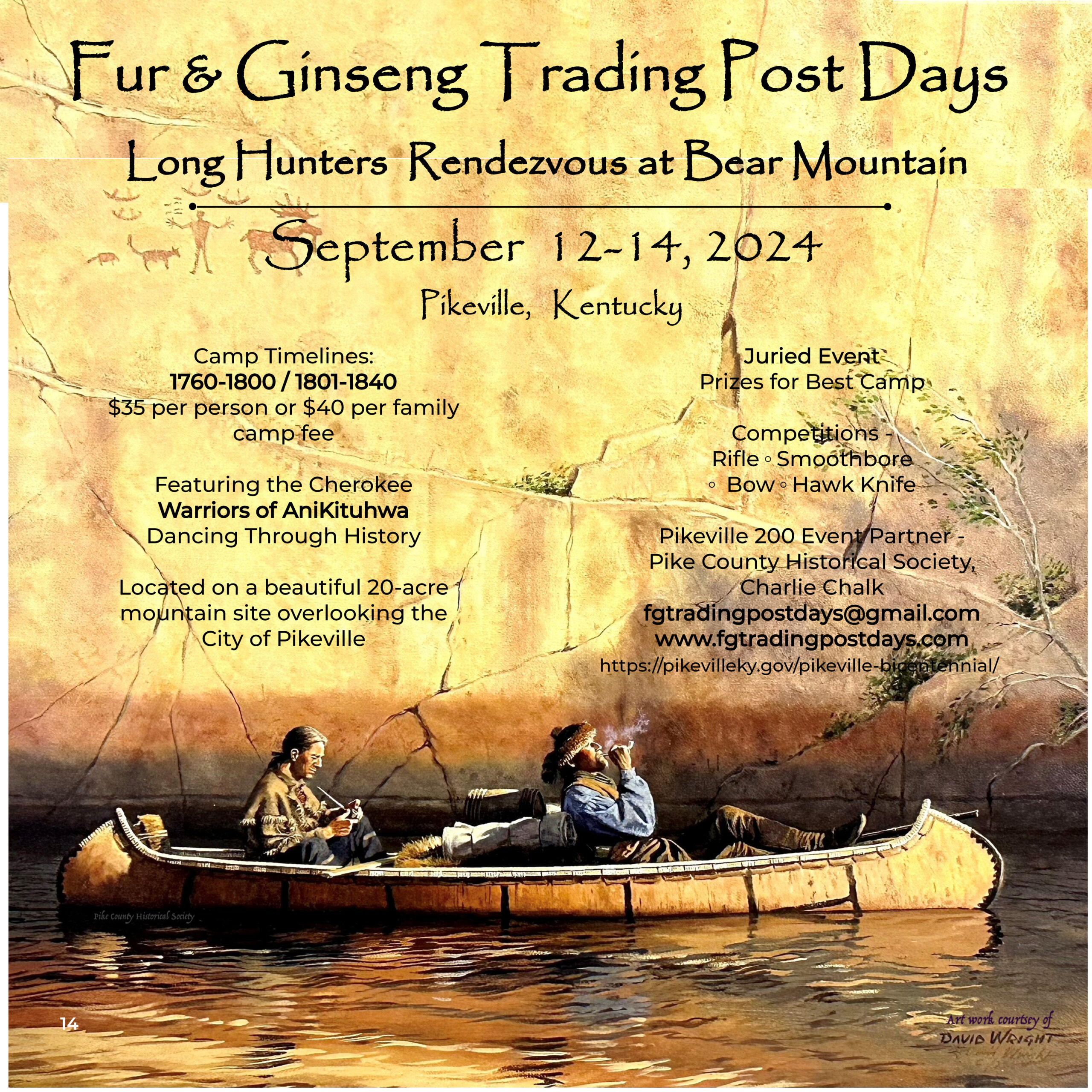 Go back in time at Fur & Ginseng Trading Post Days on September 12-14th, 2024 for a Long Hunters Rendezvous at Bear Mountain.