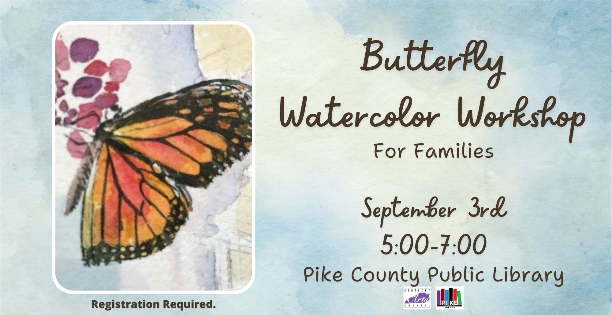 Learn to draw a butterfly, practice watercolor techniques and composition, and create a watercolor painting of a butterfly! This family friendly 2-hour workshop is open to all ages. This workshop is led by Kentucky Teaching Artist Pat Banks. You can … Read More |