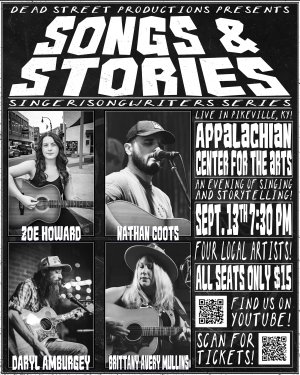 Experience an unforgettable evening of music and storytelling at the Appalachian Center for the Arts in Pikeville, KY! Dead Street Productions proudly presents "Songs & Stories," a captivating singer/songwriter series showcasing the incredible talents of four local artists: Zoe Howard, Nathan … Read More |