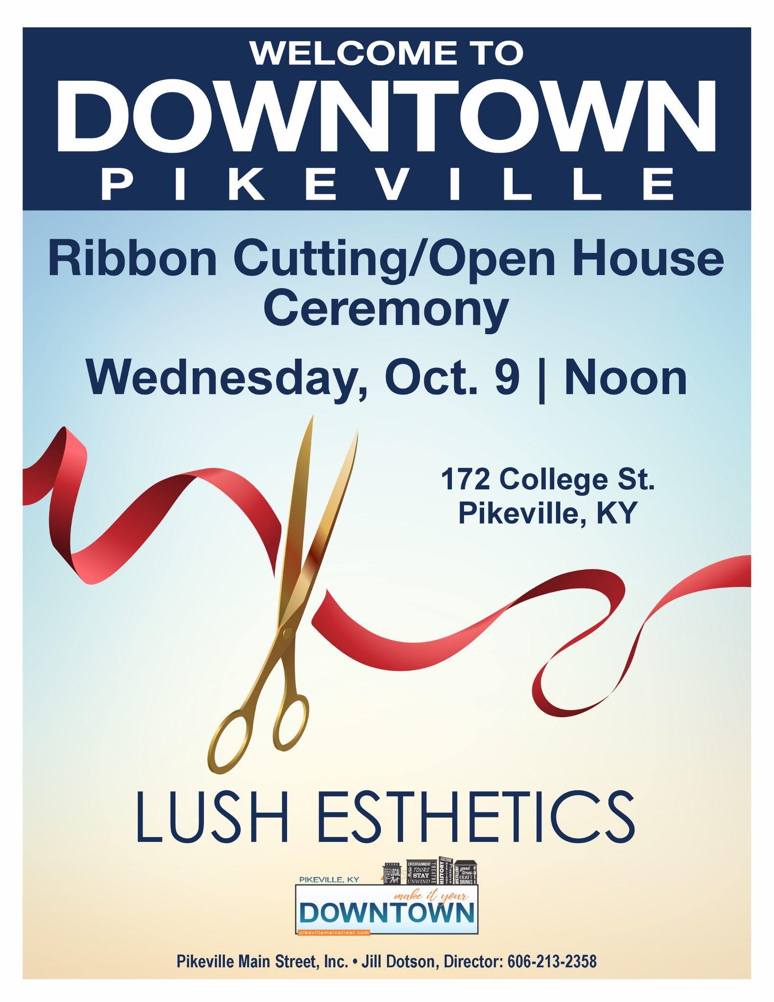 Please join Pikeville Main Street as we celebrate the ribbon cutting and open house at Lush Esthetics this Wednesday at Noon. Take time to tour the new location and get information on all services offered. |
