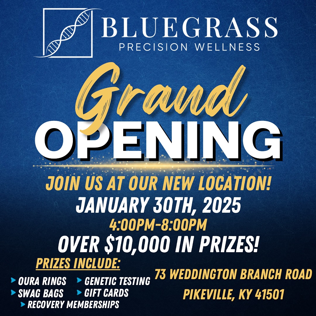 Join Us for the Grand Opening of Our New Location! When: January 30th, 2025 Time: 4 PM – 8 PM Where: 73 Weddington Branch Road Pikeville, KY 41501We’re kicking things off in style with over $10,000 in prizes to give away! Prizes Include: Oura Rings Recovery … Read More |